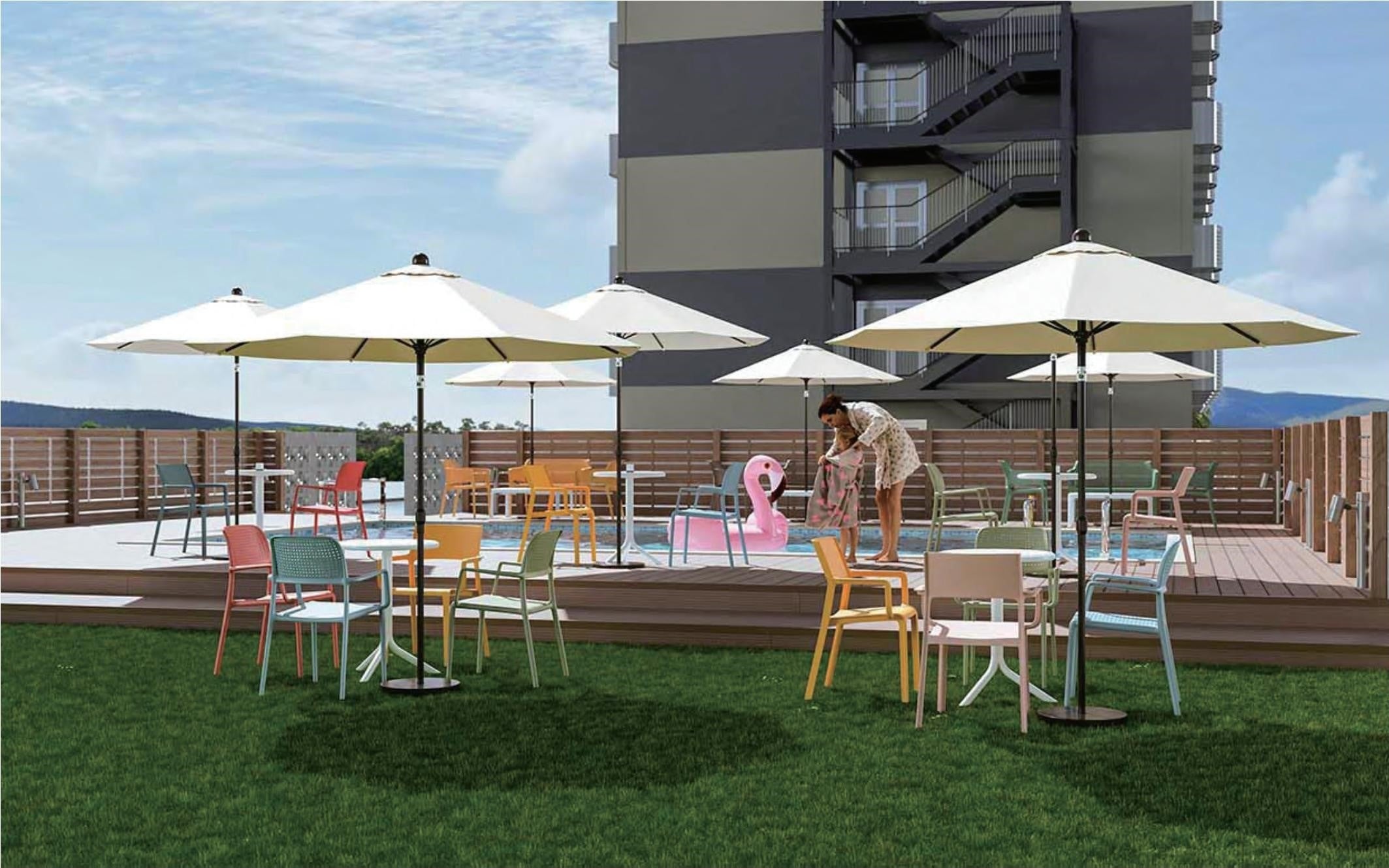 本ホテルは2024年1月まで運営していたビジネスホテルを閉業し、既存設備を活用しながら客室レイアウトの変更、ロビー・レストランエリアの改修、敷地内にプールやキッズエリア(芝生)増設等を行い、リゾート滞在型の宿泊施設にリニューアルすることでファミリーなどのレジャー需要を呼び込む新しい施設にリブランドいたします。
