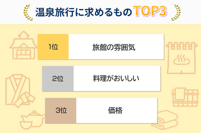 温泉旅行に求めるもの1位は、旅館の雰囲気