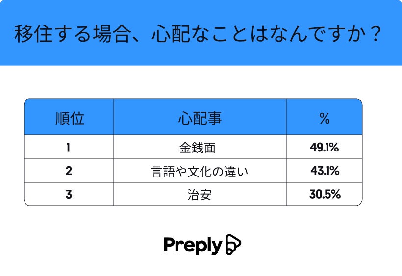 日本以外の国に移住する場合、心配なことのトップは「金銭面」や「言語や文化の違い」
