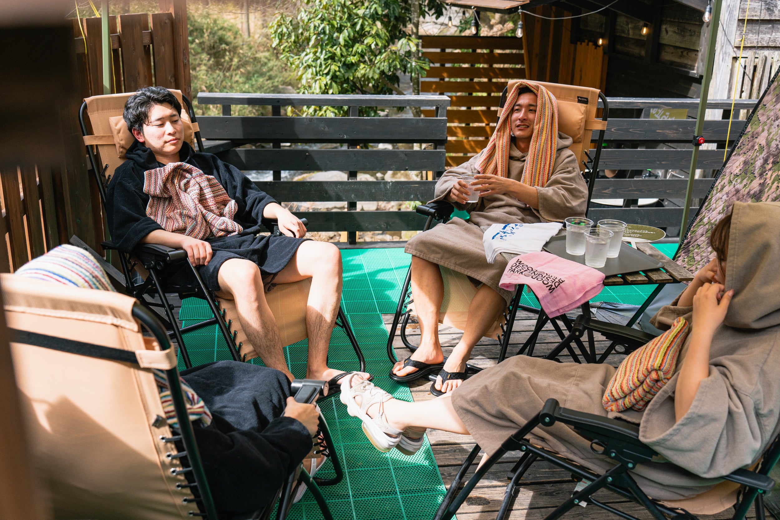 川から上がったらインフィニティチェアで木々を眺めながらの外気浴。