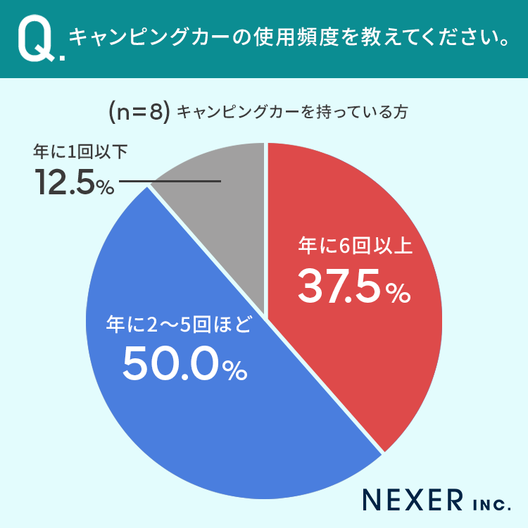 50%の方が「年に2~5回ほど」キャンピングカーを使用している、と回答しています。