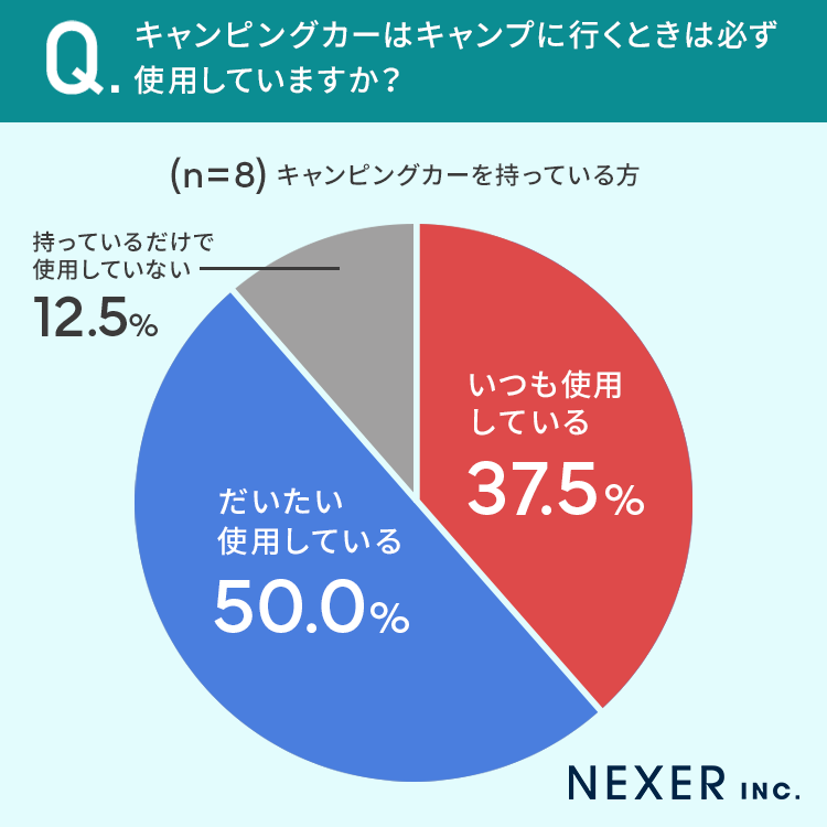 またキャンピングカーを持っている方に聞いたところ、37.5%の方が「いつも使用している」と答えていました。