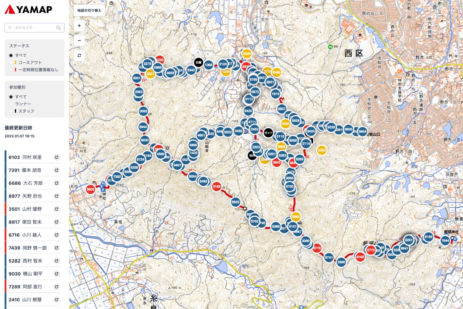 ・動けなくなった選手がいた時に、救護スタッフをどこのエイドから派遣するかの判断ができた。