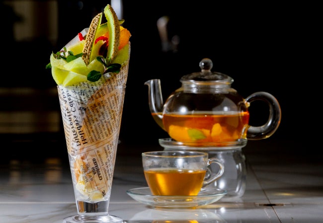 メロンのクレープパフェとフルーツハーブティーセット
