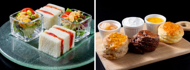 セイボリーは”ナッツサラダ”、”スモークサーモンとチェダーチーズのサンドイッチ”、