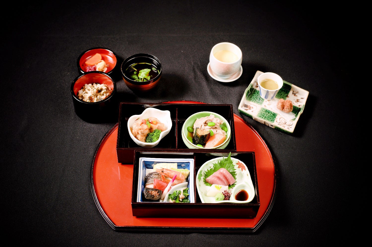 2種類の特別御膳料理には牛肉の鉄板焼き、握り寿司、天麩羅など