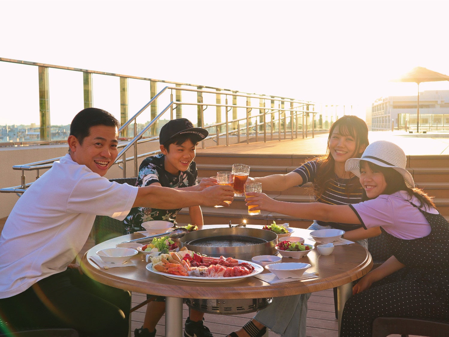 オープンエアのテラスでカジュアルにBBQディナーを。
