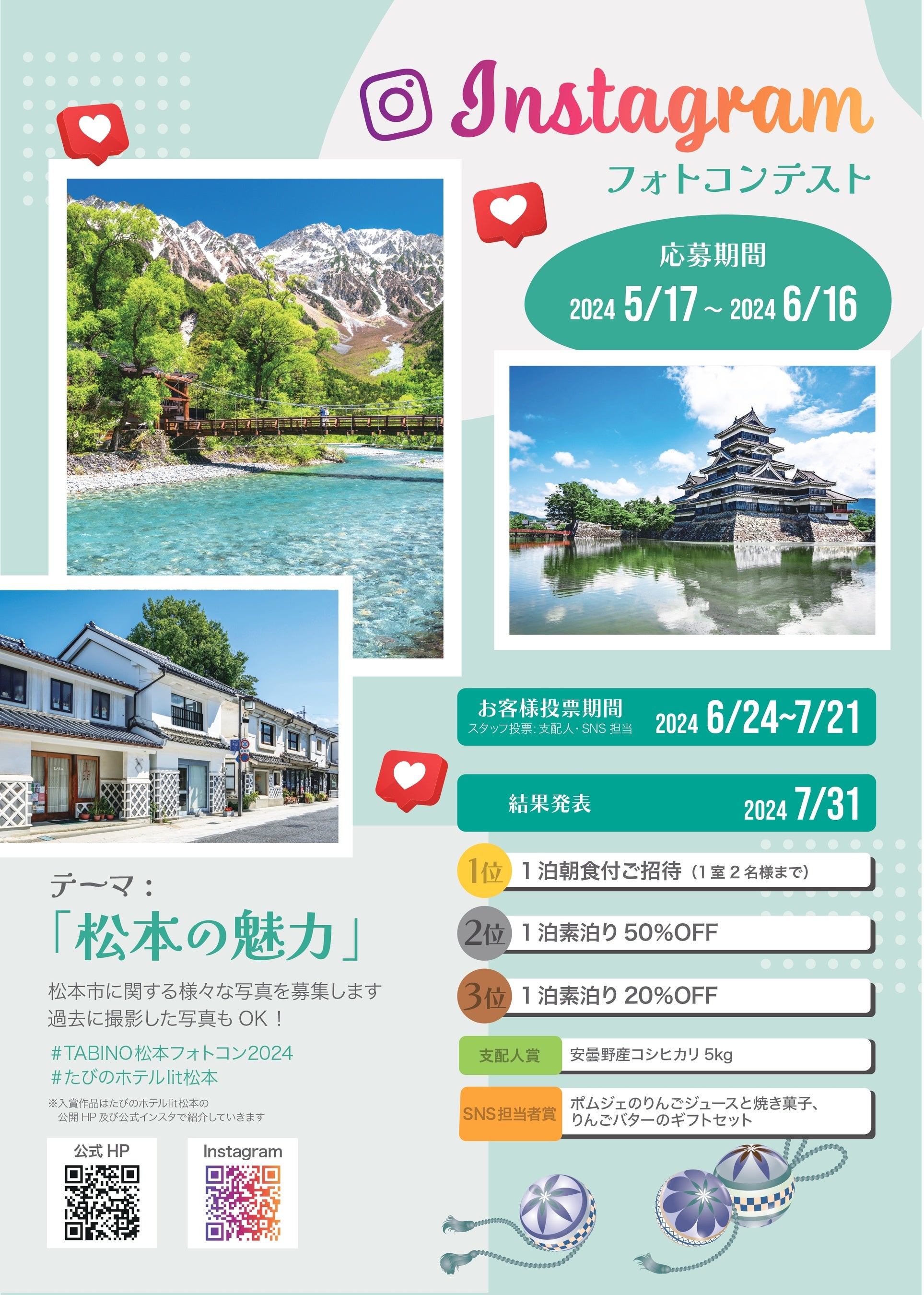 サンフロンティアホテルマネジメント株式会社が運営する「たびのホテルlit松本」は、5月17日(金)より「松本の魅力」をテーマに、Instagramフォトコンテストを開催いたします。