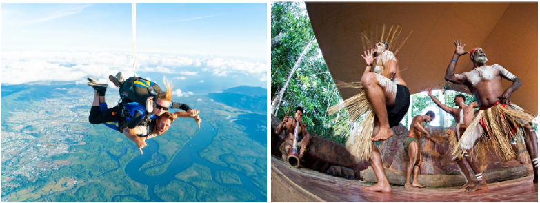 上空4,572mからスカイダイビング。眼下には、ケアンズの世界遺産である熱帯雨林や大自然が眼下に広がります。時速200km、最大60秒間のフリーフォールは人生観が変わる体験になること間違いありません。