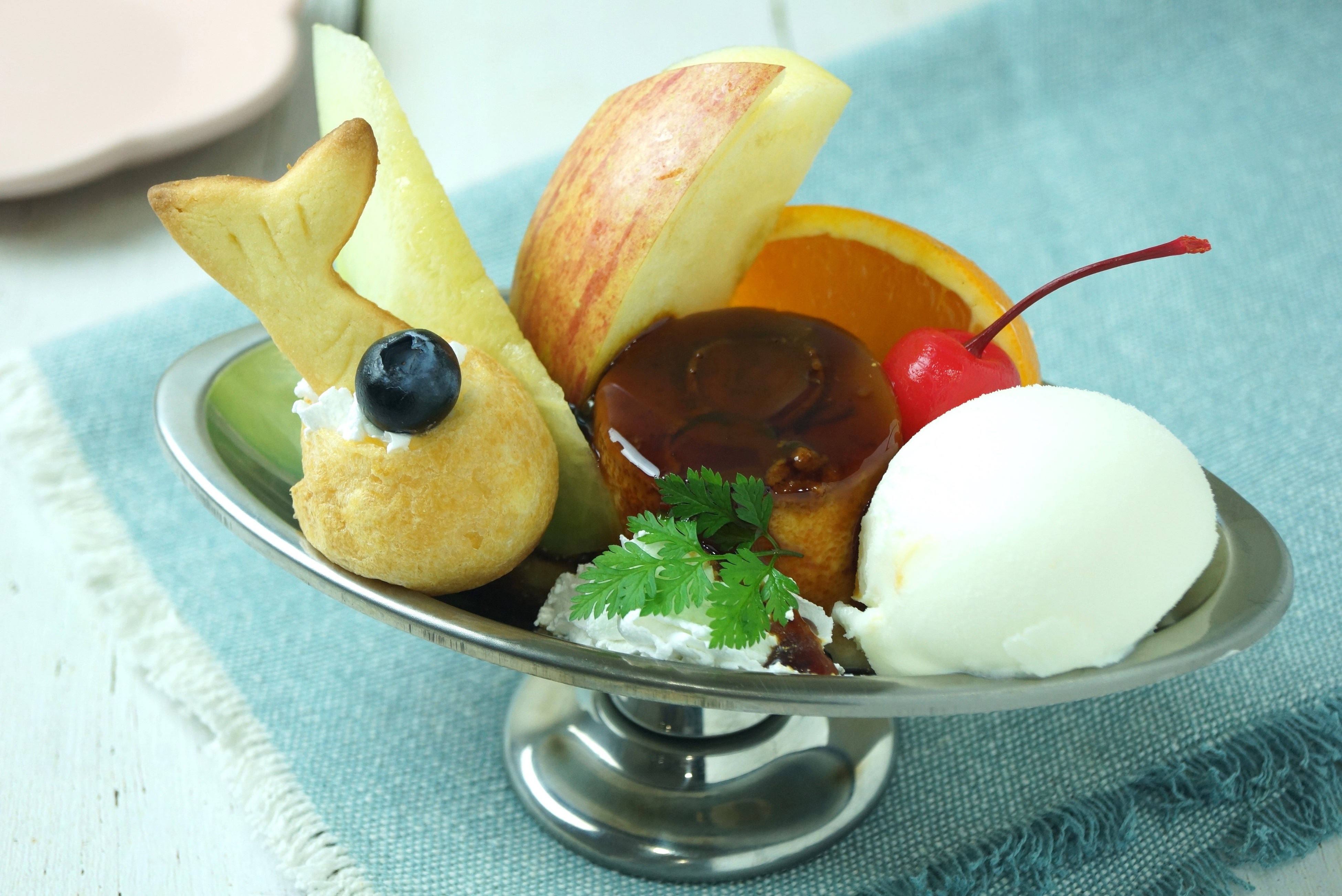 純喫茶の定番メニュー「プリンアラモード」。昨今、リバイバルブームによって数多の店舗で提供が再開している一品が当館カリメーラにも期間限定で登場いたします。