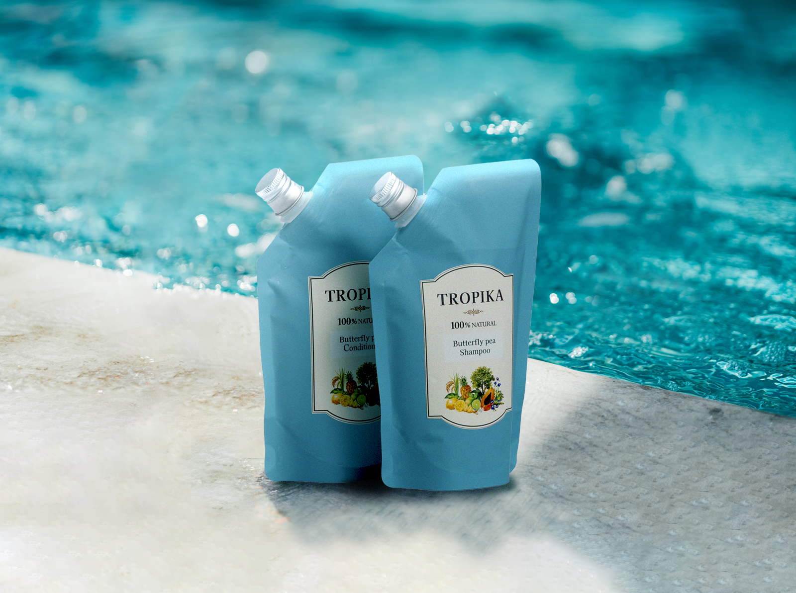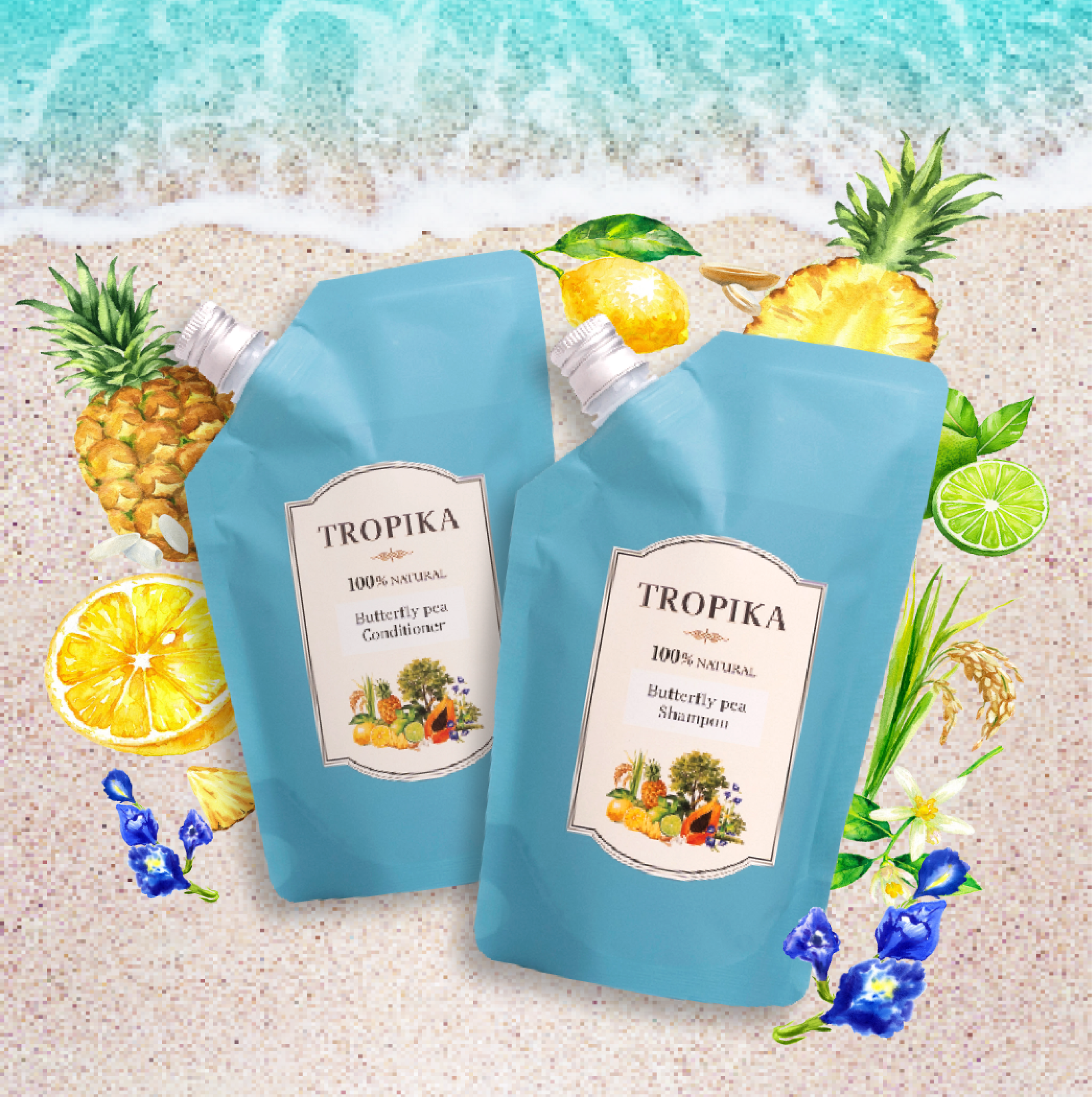 ナチュラルさと低刺激(*1)にこだわる「TROPIKA」は、人工香料/着色料、パラベン、アルコール、ミネラルオイルに加えて、合成防腐剤も不使用。原料であるバタフライピーの自然でスッキリとした甘い香りを楽しめます。また、合成防腐剤フリーの為、できる限りフレッシュな状態で使い終われるよう、開封後は3,4か月以内の使用を推奨しており、多くの人が1カ月程度で使い切れる250mlを1パックの容量としています。