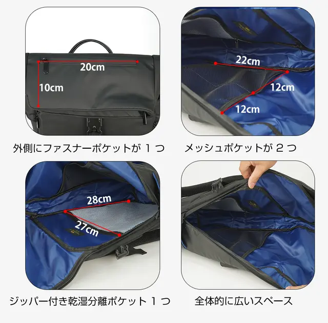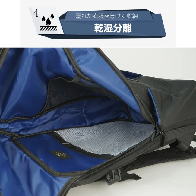 ② 収納力だけじゃない!【撥水性】【耐摩耗性】【耐久性】【乾湿分離】機能性も兼ね備えたバックパック