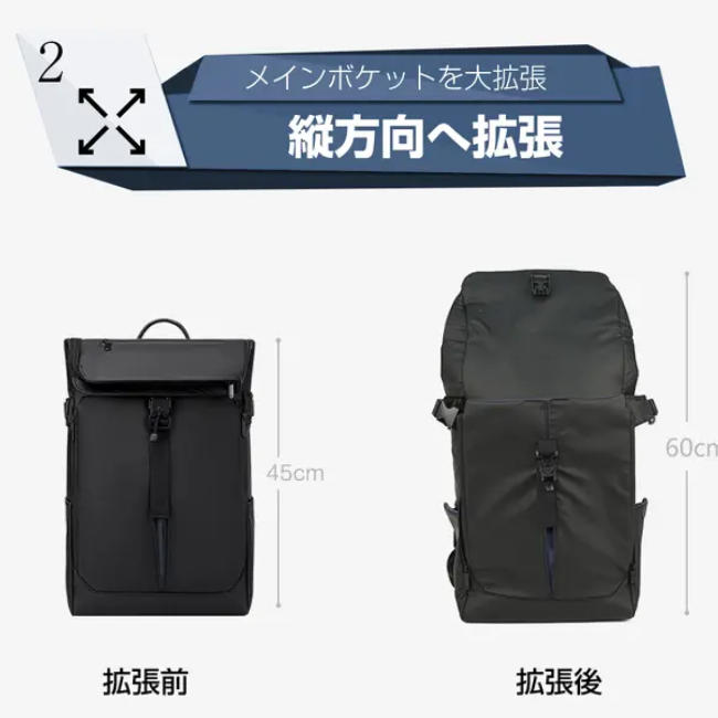 普段は16cmのコンパクト→縦にも横にも自在に拡張!【スマート拡張バックパック】