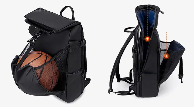 ※外側のポケットに入るのは7号のバスケットボール(直径約24cm)程度までとなります。フルフェイスのヘルメットは入らない場合がありますのでご注意ください。