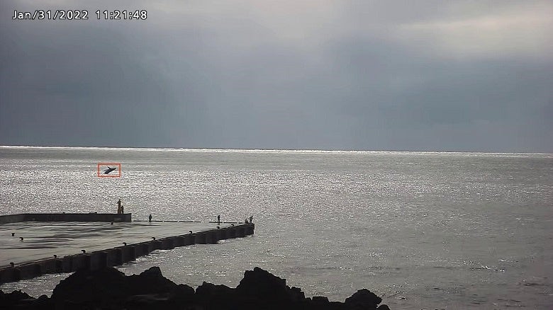 八丈島の持つ豊かな自然環境の象徴の1つであるザトウクジラについて、従前より、〈みずほ〉は八丈町や国立大学法人東京海洋大学と連携し、生態調査や地域資源としての観光振興への活用において、デジタル技術の導入を支援してきました。なかでも、防災目的で導入した定点カメラの映像データから、AI画像認識技術を用いて、ザトウクジラの来遊状況を遠隔かつ適時に把握する実証を継続して実施しています。