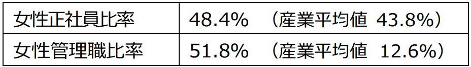管理職の意識改革のための「管理職セミナー」の実施、女性のキャリアアップ支援、女性リーダー育成、パートタイム社員から社員への登用等の取り組みにより、女性が活躍しやすい環境を整備しています。