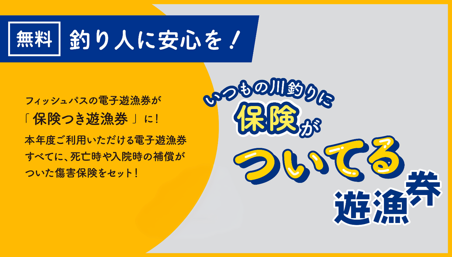 FISH PASS(フィッシュパス)の遊漁券は無料保険つきです(2024年5月時点)。