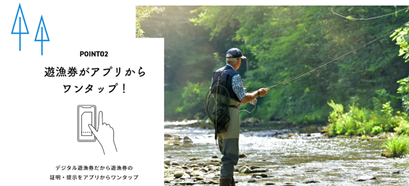 対応河川数No.1遊漁券アプリ ”FISH PASS(フィッシュパス)”を活用し、これまで問題であった「エントリーの手間」と「遊漁券購入の手間」を軽減いたします。
