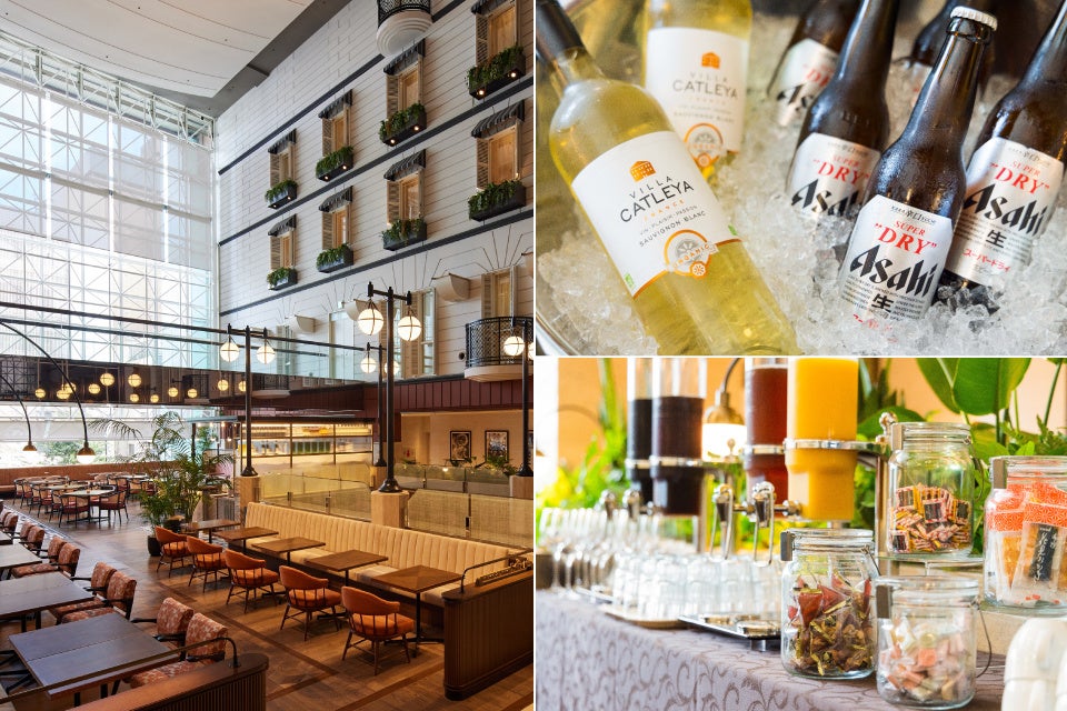 2階「ラウンジ&ダイニング SORAE」内のゲストラウンジは、今回のリニューアルで、東急ホテルズ コンフォートメンバーズ(ご宿泊やお食事でポイントが貯まる、お得にホテルを利用できる会員サービス)の皆様がご宿泊の際に、平日限定でご利用いただけるようになります。ビールやワイン、ソフトドリンクの他、スナック類をご自由にお召し上がりいただけます。さらに、プレミアムタイプ客室に宿泊のお客様には、これまで以上に上質なホテルステイをお楽しみいただけるよう、同じく「ラウンジ&ダイニング SORAE」にて、ドリンクサービスやスナック類のご提供はもちろん、お食事も特別割引き料金にてご提供いたします。お酒にぴったりのシャルキュトリーやチーズ、軽めのお食事など、用途にあわせてご利用いただけます。他では中々味わうことのできない開放感あふれるアトリウム空間で、思い思いのひと時をお過ごしください。