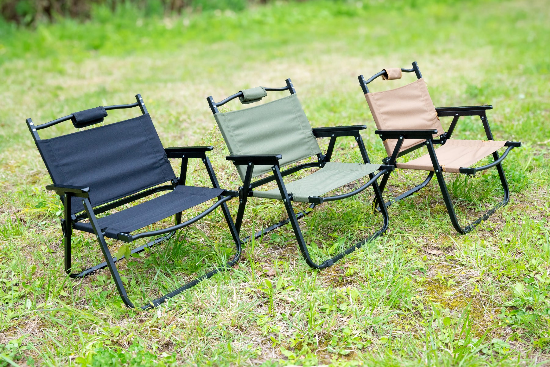 マットなブラック塗装のアイアンフレームと、ブラック塗装の天然木肘掛けが織りなす洗練されたデザインが特徴です。シンプルなデザインはどんな空間にも自然と溶け込み、アウトドアシーンはもちろん、リビングやダイニングなどの室内でも活躍する、まさに万能なチェアです。