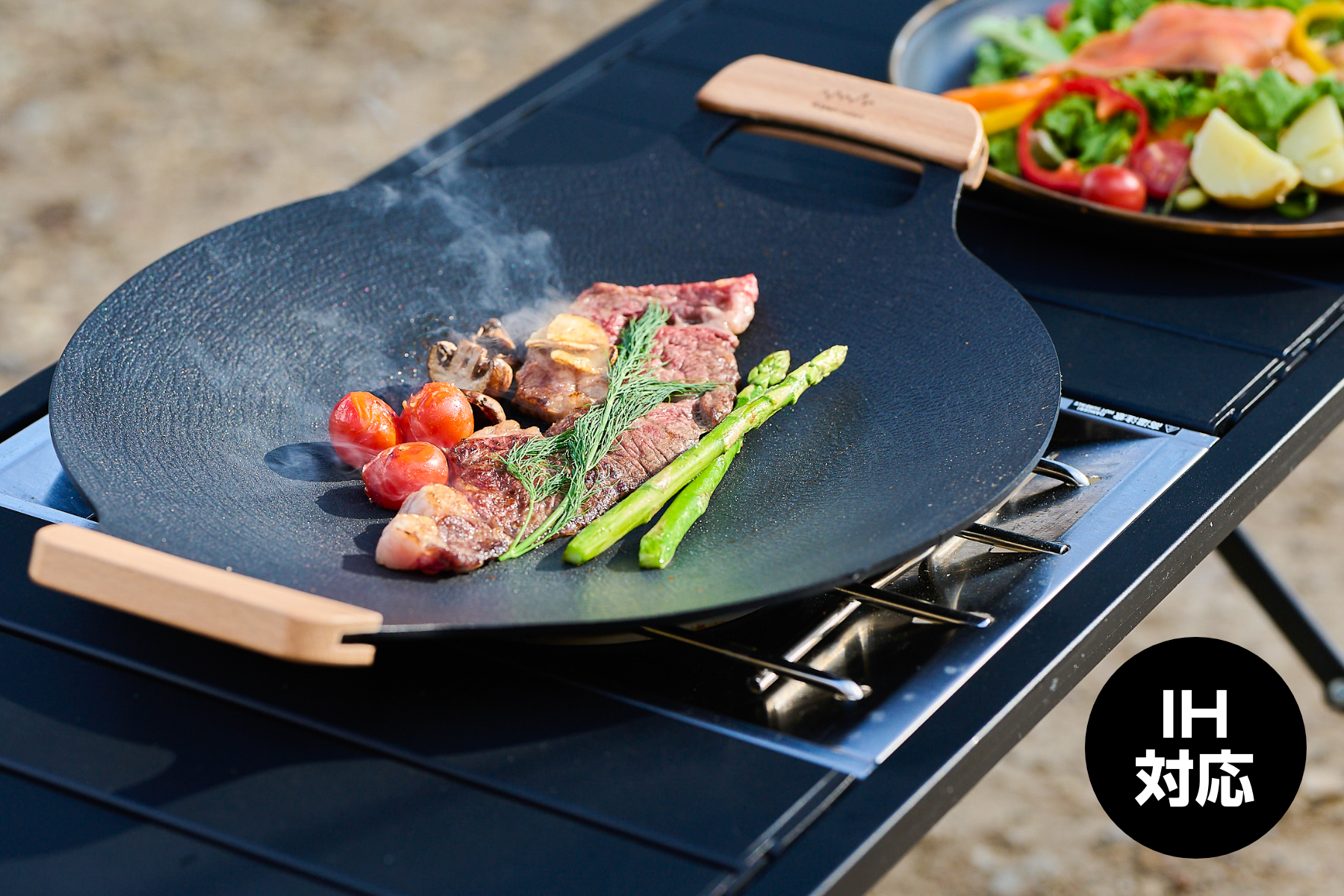 直火はもちろんIHや電気調理器にも対応しており、キャンプ場でもご家庭でも、場所を問わずお使いいただけます。