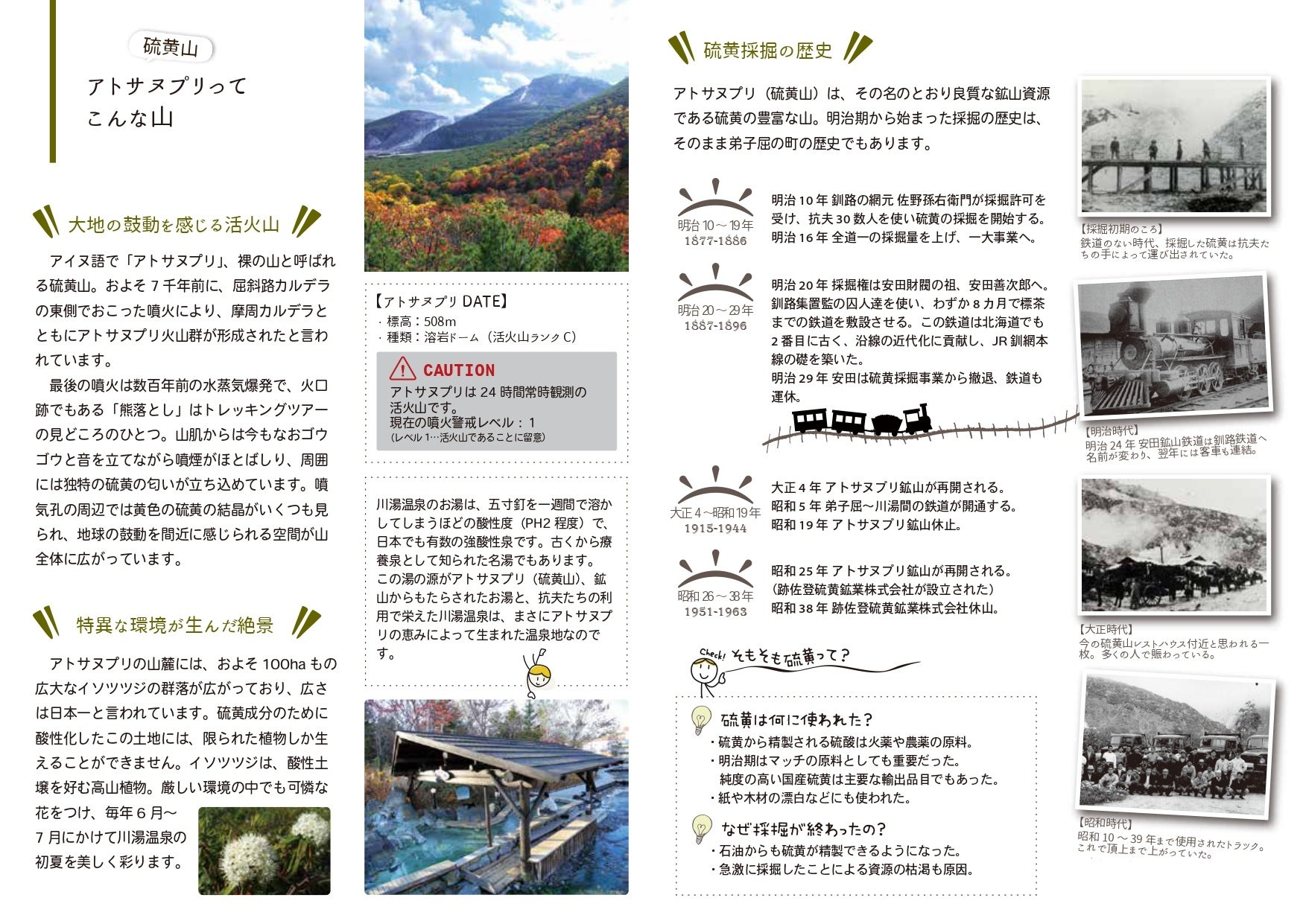 同町は2016年に北海道で初めての「エコツーリズム推進全体構想」認定地域となり、持続可能な観光地に向けた各種取り組みを行っております。本ツアーはこの仕組みを活用し一般では入山出来ない制限区域を認定ガイド同行で入山する特別なツアーです。川湯温泉の象徴とも言える「硫黄山」の噴気孔を「特定自然観光資源」としており噴気孔からのダイナミックな噴煙や遠くに広がる山々などの絶景、認定ガイドによる花や樹木、硫黄山の歴史・文化など学びの多いツアーとなります。ツアー料金の一部は自然観光資源の保全や整備等に用いられ、お客様参加型のエコツアーとなります。