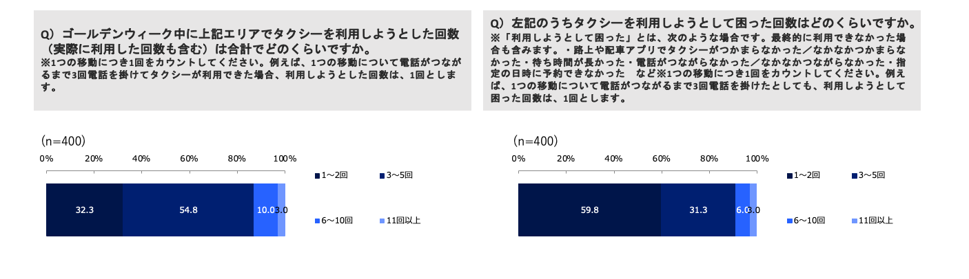 【設問】GW中に上記エリアでタクシーを利用しようとした回数は合計どのくらいですか(n=400)