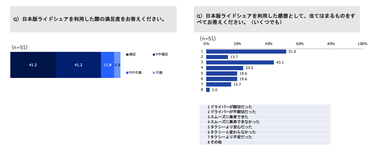 【設問】日本版ライドシェアを利用した際の満足度をお答えください(n=51)