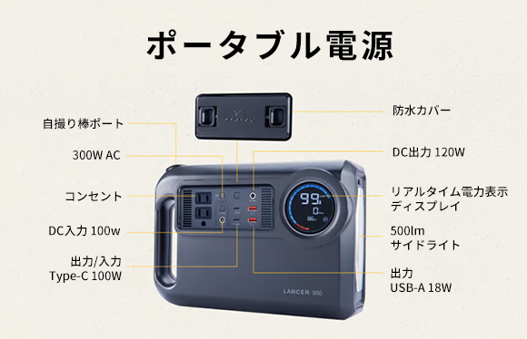 ■商品名      ポータブル電源一体型3-in-1バックパック「LANCER 300」