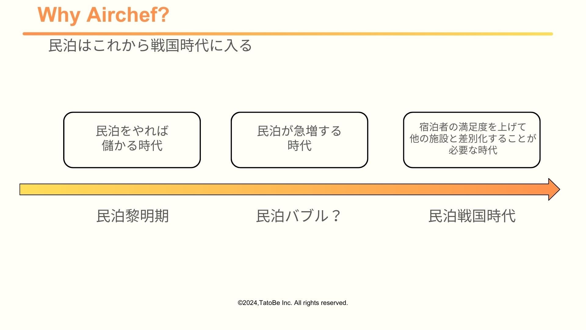 2024年に入り、よりインバウンド観光客の増加が盛り上がりを見せている中で、日本においても民泊の存在感が高まってきました。そんな中で、より民泊の在り方を柔軟に、面白いものにするサービス「Airchef」がリリースされました。