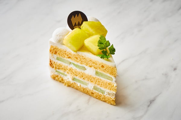 濃厚でコクのある奥久慈卵を使用し焼き上げたスポンジにメロンシロップを染み込ませ、口どけの良い風味豊かな北海道産のフレッシュクリームと、清涼感のある爽やかな甘みと香りを堪能できるメロンの果肉をサンドしました。メロン・スポンジ・フレッシュクリームのハーモニーをお楽しみいただける、季節限定のショートケーキです。