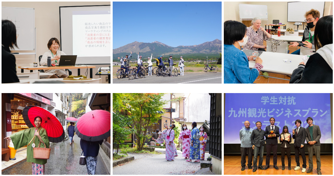 また、黒川温泉フィールドワークで地域づくりを学んだり、地域の魅力を伝えるサイクリングツアーづくりなど