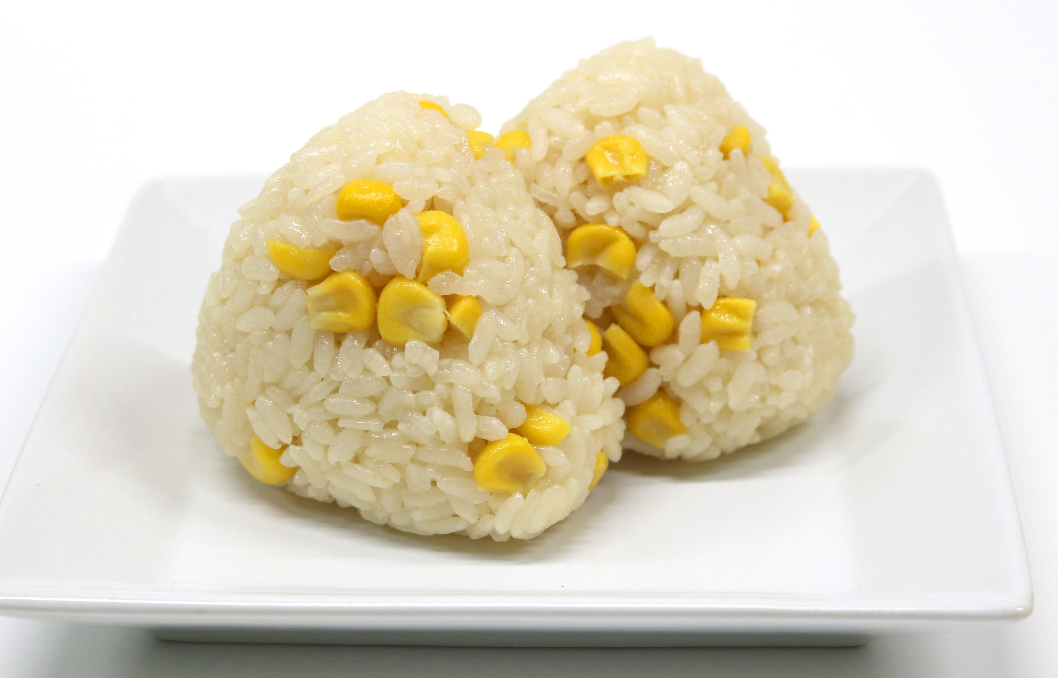 キャプション:第1弾「北海道とうきびご飯」おにぎり