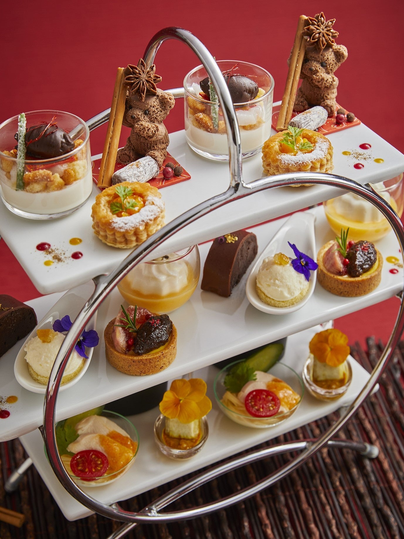 また、韓国で人気のさつまいもを使ったコグマケーキや、花のように芳醇な香りが特徴のロンガンを生かした白桃のムースのほか、台湾のパイナップルケーキに着想を得たスコーンなどがアジアの雰囲気を演出。セイボリーでは、もちもちした食感のベトナムのバインコットや、黒酢とラー油でアクセントをきかせた台湾風豆乳スープなどが登場します。