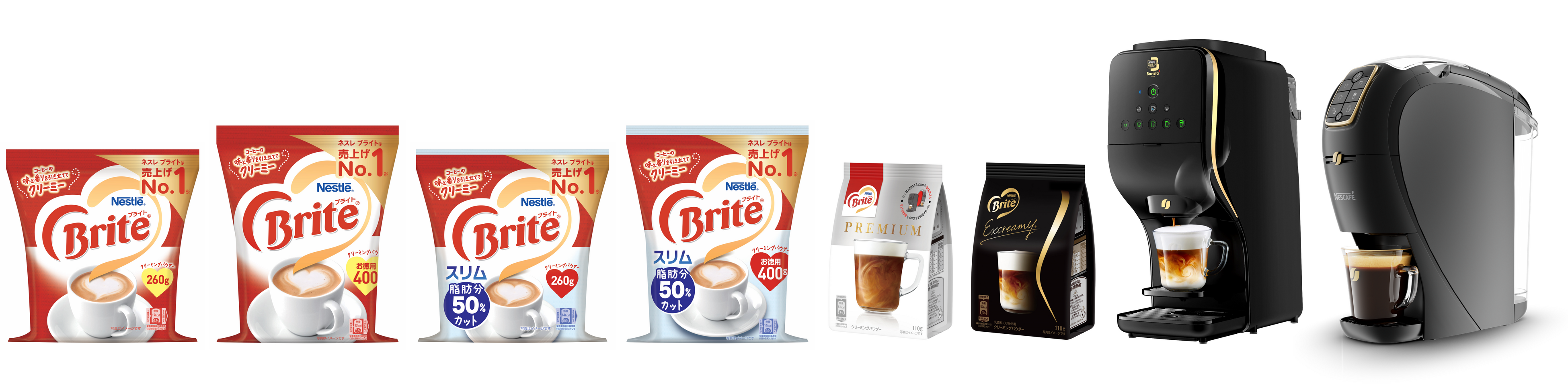 「ブライト」は、牛乳とは違い、コーヒーを冷まさず、薄めずにおいしいラテ系メニューが作れる点が支持されている、コーヒーの香りと味を引き立てるクリーミングパウダーです。「ネスレ ブライト」、「ネスレ ブライト スリム」に加え、コーヒーメーカー「ネスカフェ ゴールドブレンド バリスタ」向けの「ネスレ ブライト プレミアム」、「ネスレ ブライト エクスクリーミー」をラインアップし、きめ細やかな泡立ちのラテを簡単に楽しむことができます。ネスレでは、その「ブライト」をコーヒーだけではなく、身近な食品・料理の出来上がりに加えることで、料理本来の味を変えず、簡単にコクのあるクリーミーな味わいに仕上げることを、2021年より“追いブライト”として提案しています。