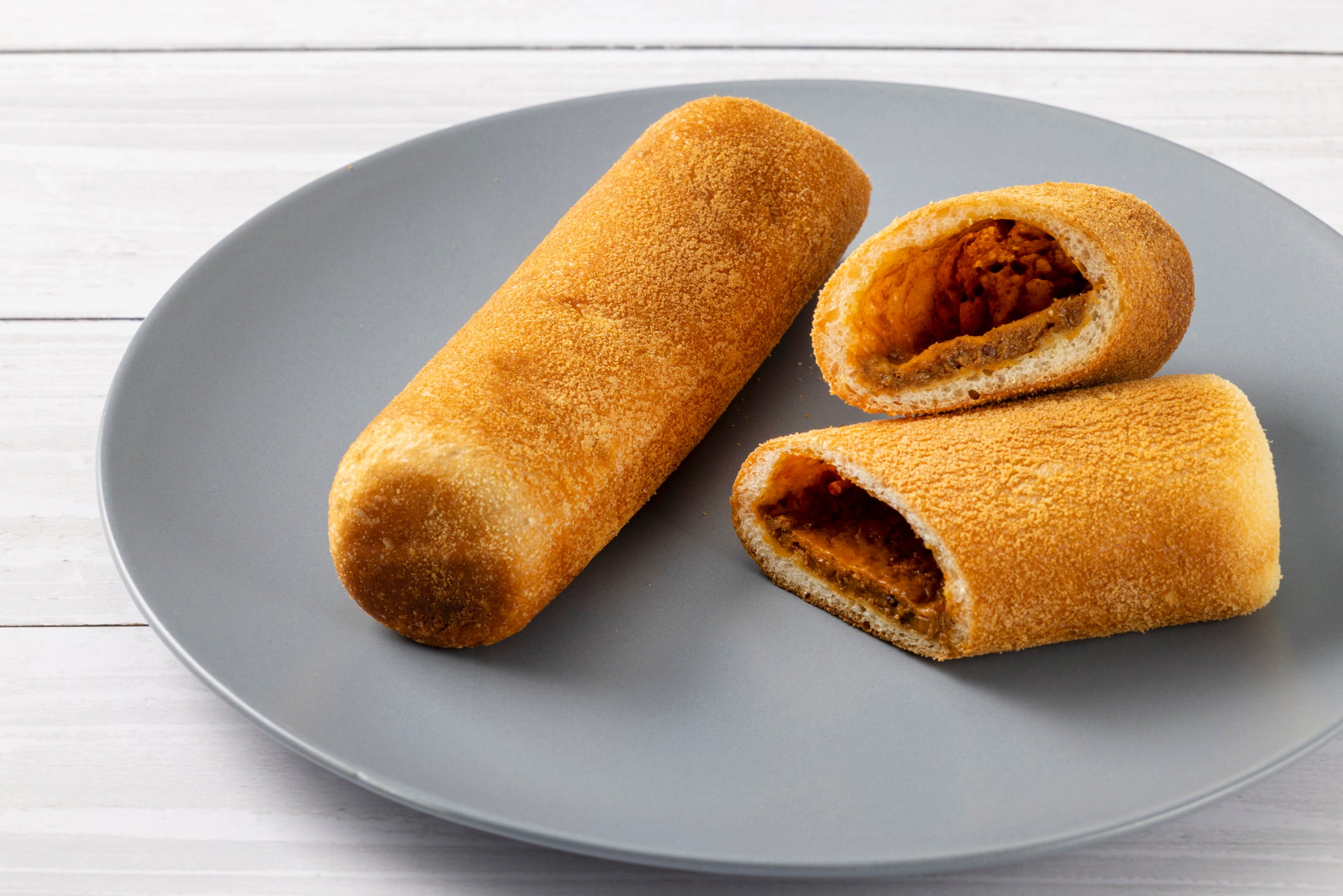 甘みのあるミルクロール生地が、鶏ひき肉のキーマカレーから香るスパイスとチェダーチーズのコクを引き立てます。揚げずに焼き上げることで、サクサクの食感をお楽しみいただけます。