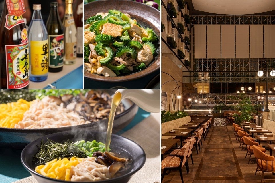 記念メニューには、ほぐした鶏肉、椎茸、錦糸卵、きざみ海苔、ネギをご飯に乗せ、鶏出汁スープをかけて食べる、奄美を代表する郷土料理「鶏飯オリジナルスタイル」と、ゴーヤ特有の苦みと豚肉や卵の旨味が絡み合うゴーヤチャンプルー風「豚肉とゴーヤと木耳と卵の炒め物」をご用意いたします。さらに、追加でご注文いただける奄美ならではの「黒糖焼酎」も数種ラインナップ。お好みの焼酎を見つけながら、飲み比べもお楽しみいただけます。SORAEで人気の10種以上の野菜のマリネが並ぶ「ベジタブルマーケット」や、柔らかくジューシーな「ローストビーフ」とともに、この時期だけの“奄美の美味雰囲気”をご堪能ください。