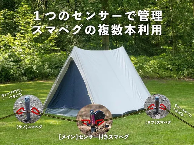 センサー付きのスマペグとサブのスマペグを繋いでおけば、1つのセンサーで自身のサイトの一元管理が可能です。貴重品やキャンプギア1つずつの盗難対策をする必要がないため、管理が楽になります。