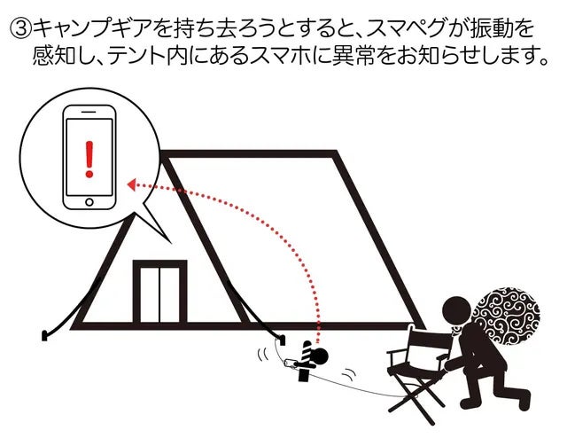 ペグに装着したIoTセンサーが振動を検知、スマホのアラート&通知機能でキャンプギア盗難を抑制!