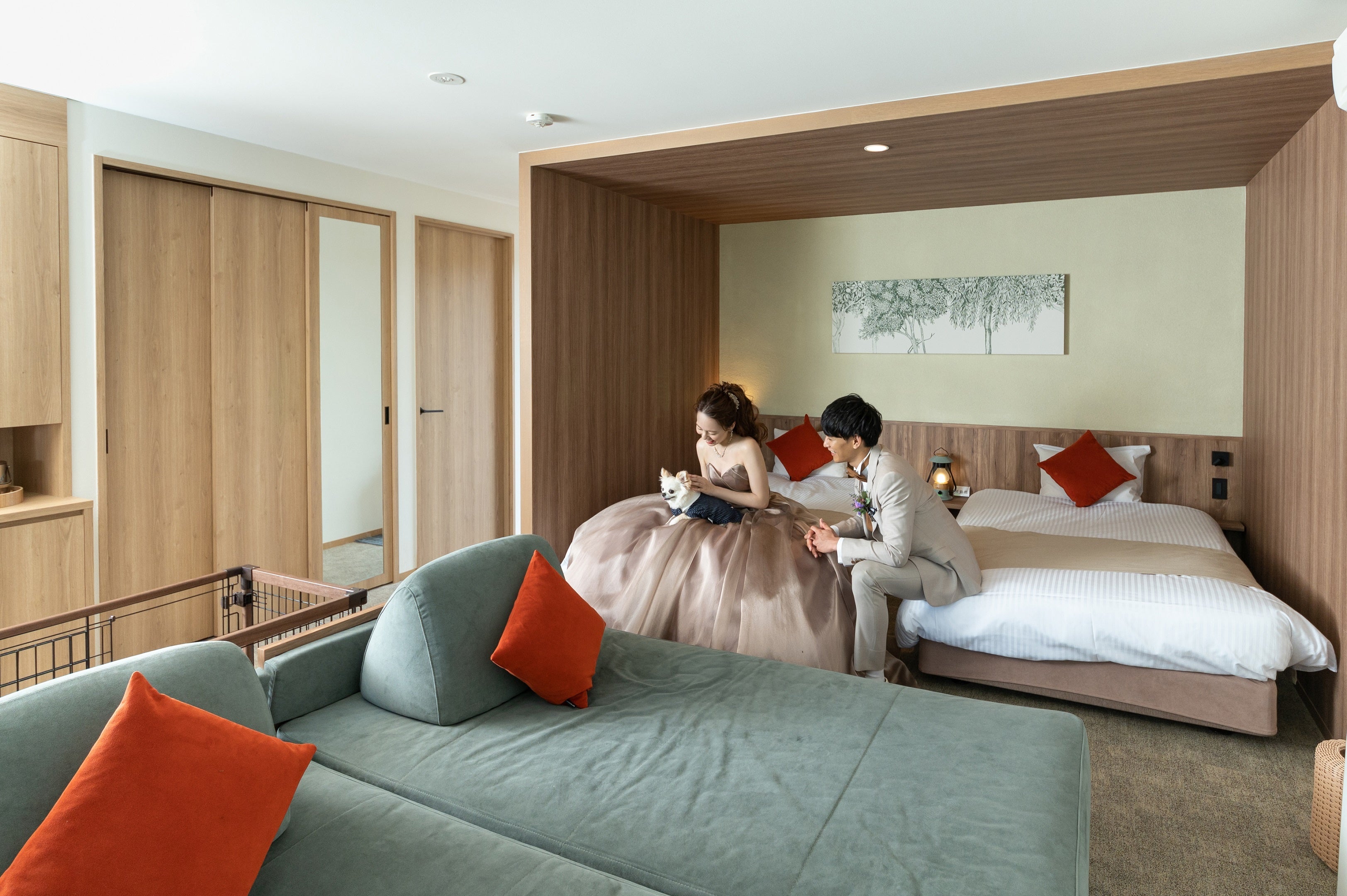 2022年春には、ワンちゃんとも一緒に宿泊ができるヴィラ棟がオープンし、おふたりの大切な家族の一員であるワンちゃんと一緒に祝福のひとときをカタチに残すことができます。