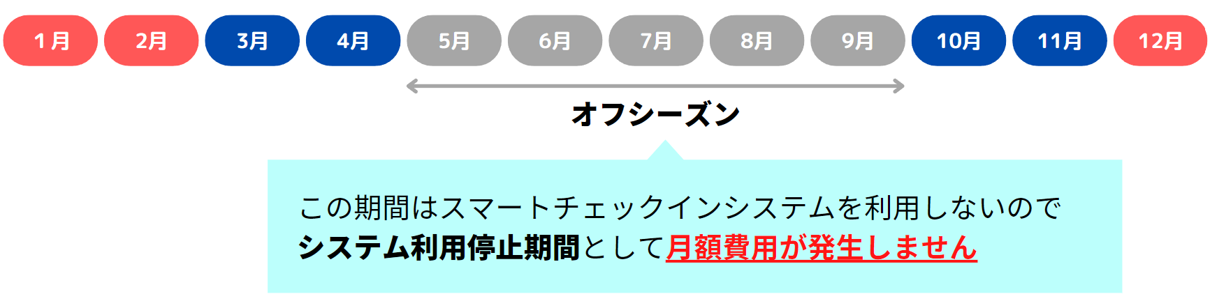 【オフシーズン対応の特別プラン】スキー場や海水浴場近郊などの宿泊施設向け!オフシーズン中はスマートチェックインの月額費用を一時停止できます