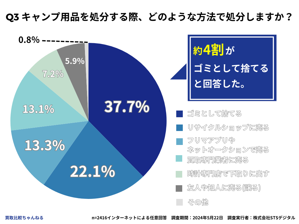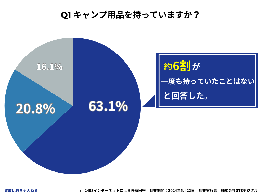 そこで、株式会社STSデジタルと株式会社浜屋が共同運営している買取比較ちゃんねる(URL:https://www.hamaya-corp.co.jp/media )は、20歳〜60歳以上の男女2403人を対象に「キャンプ用品の買取に関する意識調査」を実施しました。