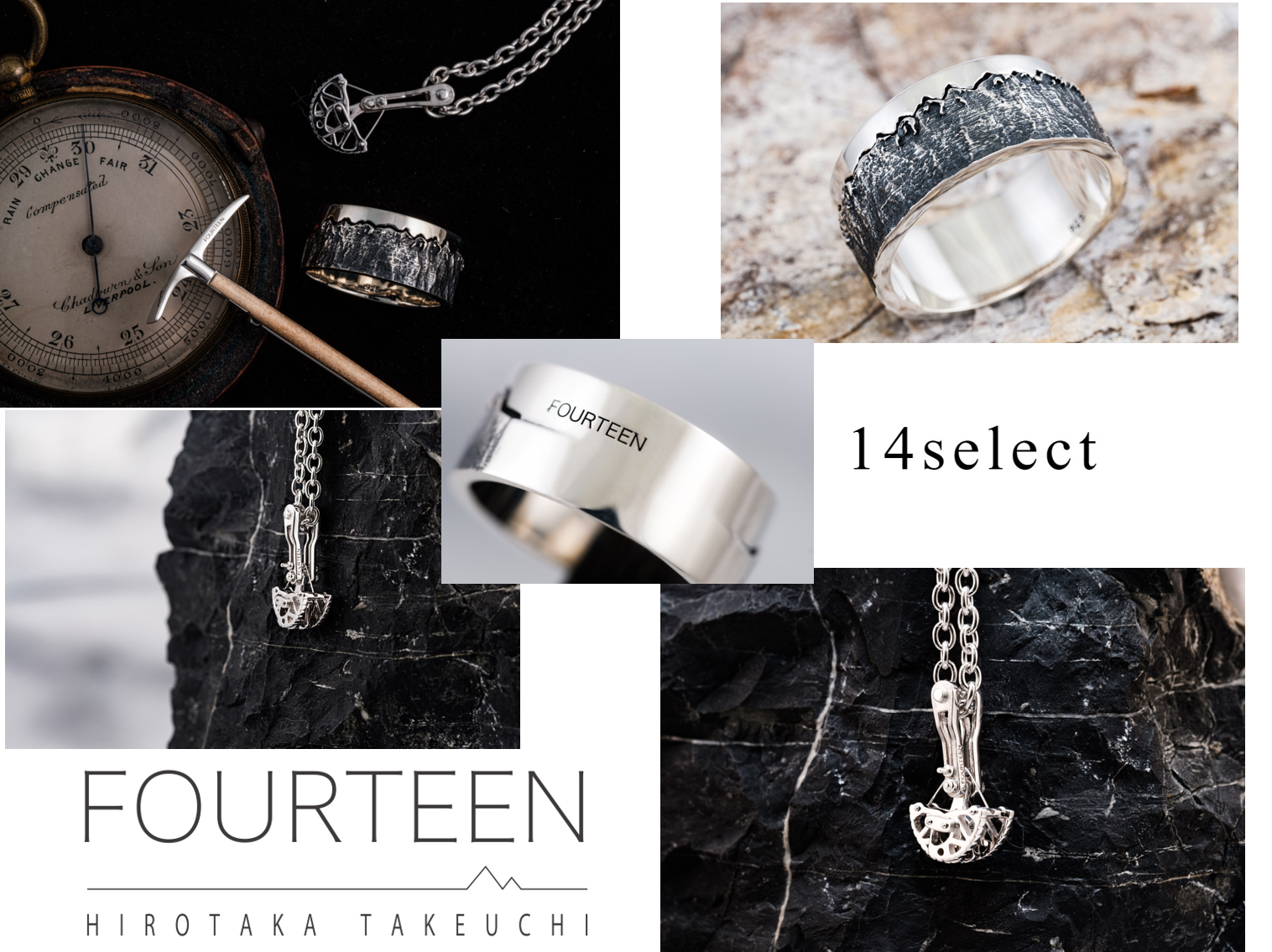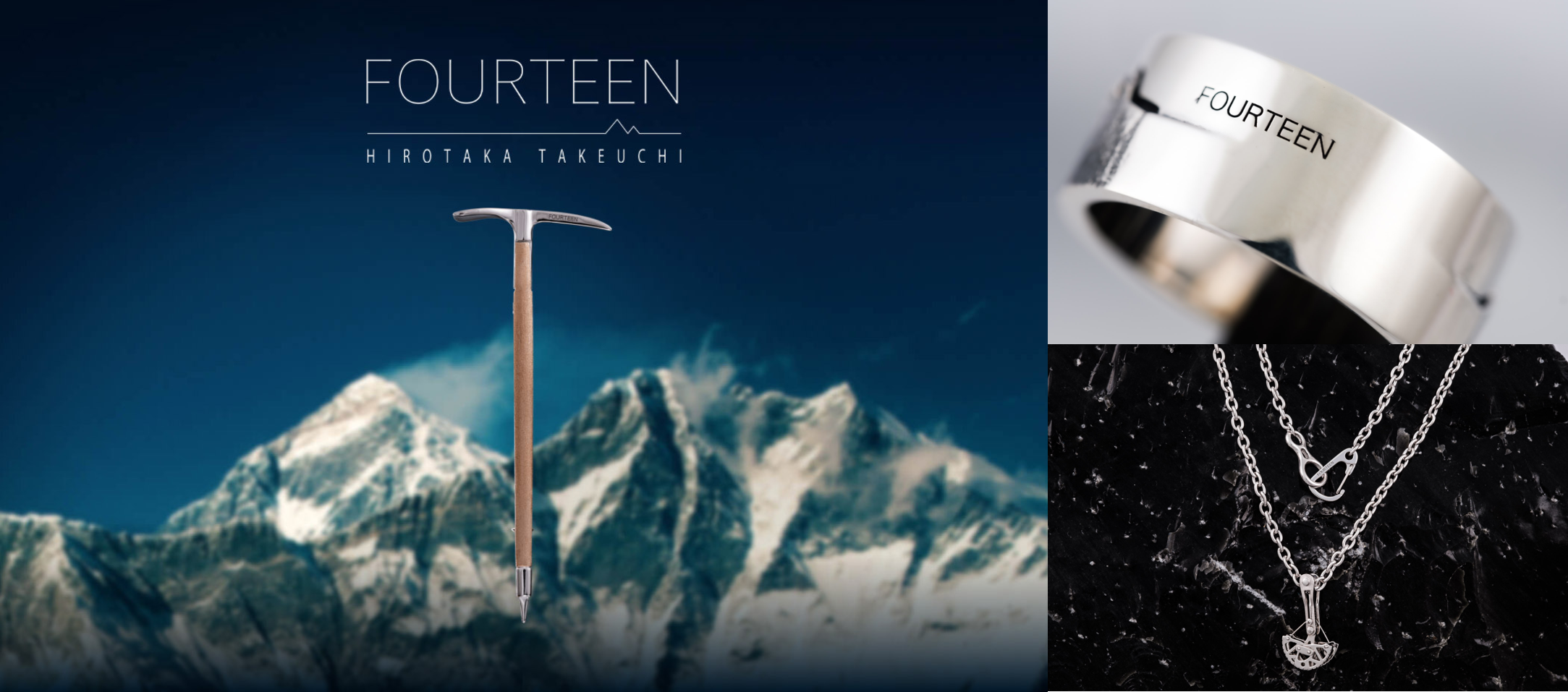 「FOURTEEN – HIROTAKA TAKEUCHI」からセカンドモデルとして、雄大なヒマラヤの山並みと、宇宙に続く空をモチーフにしたリング『HIMALAYA RIDGE (ヒマラヤリッジリング)』と、クライマーズスピリッツのシンボルでもあるカミングデバイスをモチーフにしたペンダント『MATE (メイト)』の2点を新たに発表。