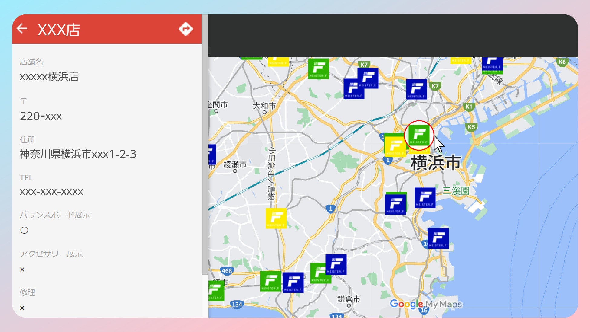 ④ 選択したアイコンをクリックすると店舗情報が出てきます。