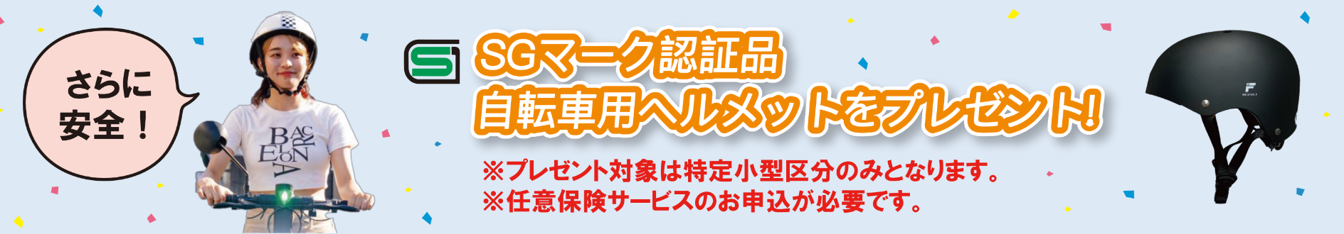 お手続きいただいたお客様にはさらに、SGマーク認証取得の自転車用のMEISTER.Fロゴ入りのオリジナルヘルメットをもれなくプレゼント。