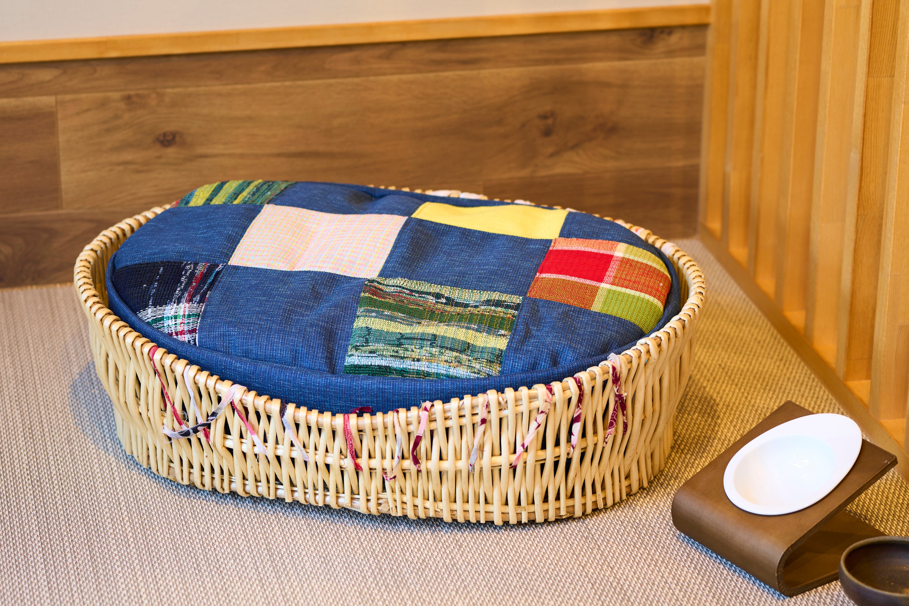 青森の方言で赤ちゃんを寝かせるために藁で作られたゆりかごを表す「えんつこ」から着想を得たペットベッド「わんつこ」で、ゆりかごに包み込まれているような居心地の良さと安心感を得られます。中のクッションは青森の伝統工芸品「南部裂織(さきおり)」を使用し、一つひとつ手作りでできており、温もりを感じられるデザインが特徴です。