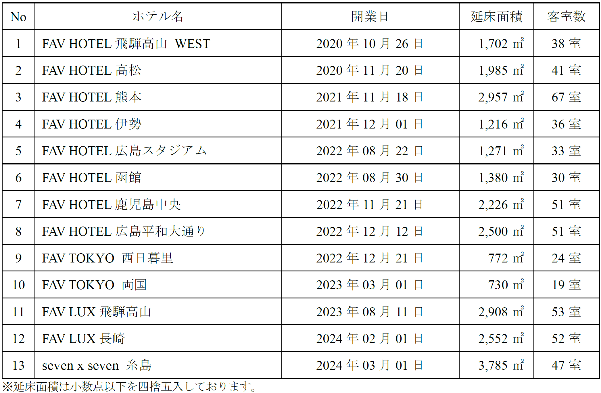 当社は、観光立国の実現や地域創生への貢献を目的にホテルの開発に取り組んでおり、『FAV HOTEL』シリーズのブランド(『FAV HOTEL』『FAV LUX』『seven x seven』)を全国で展開しております。このたび、当社グループのホテルブランドの開発用地を新たに販売用不動産として取得いたしました。