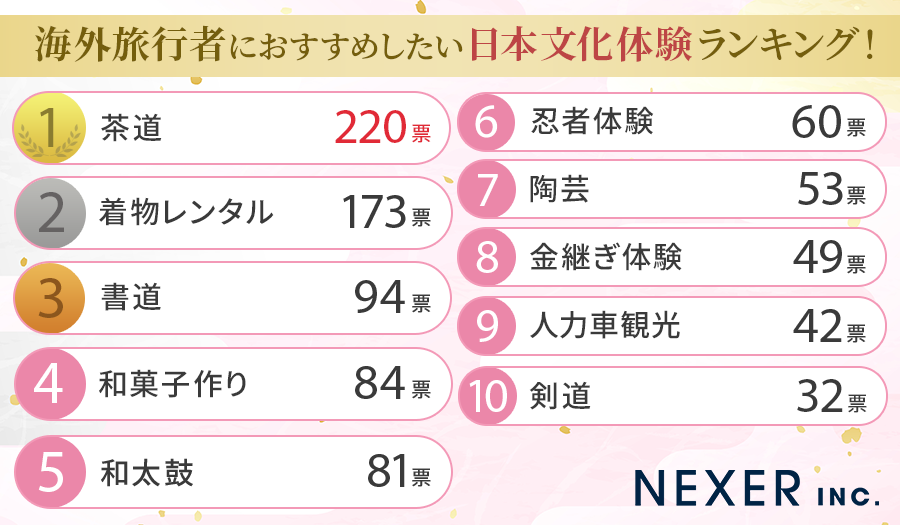 株式会社NEXER・海外旅行者におすすめしたい日本文化体験に関する調査