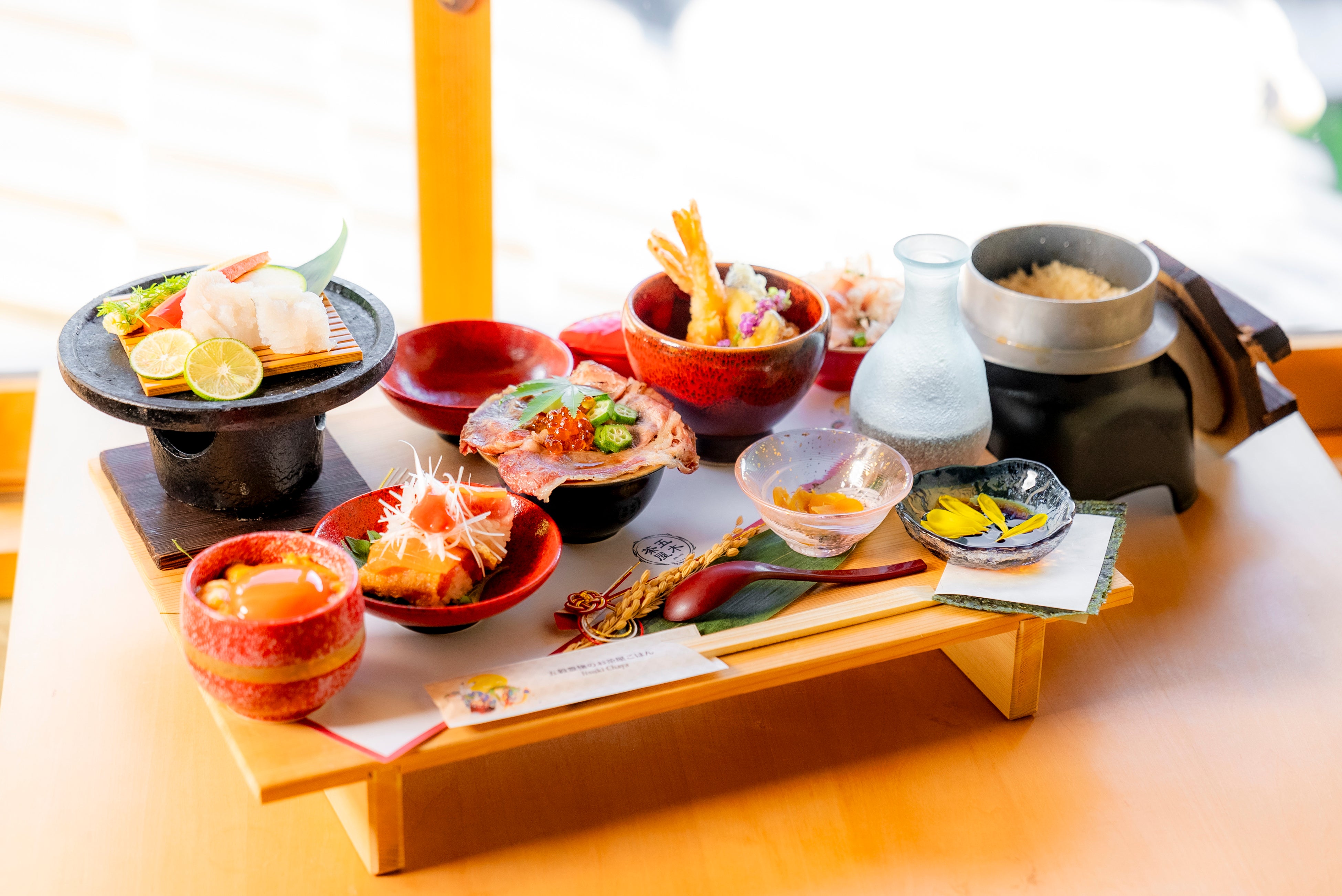 旬な素材の風味を最大限に引き出し、御膳全体のバランスを大事にした贅沢な膳をお楽しみいただけます。夏野菜の彩り豊かな京丼で、夏の訪れを満喫ください。