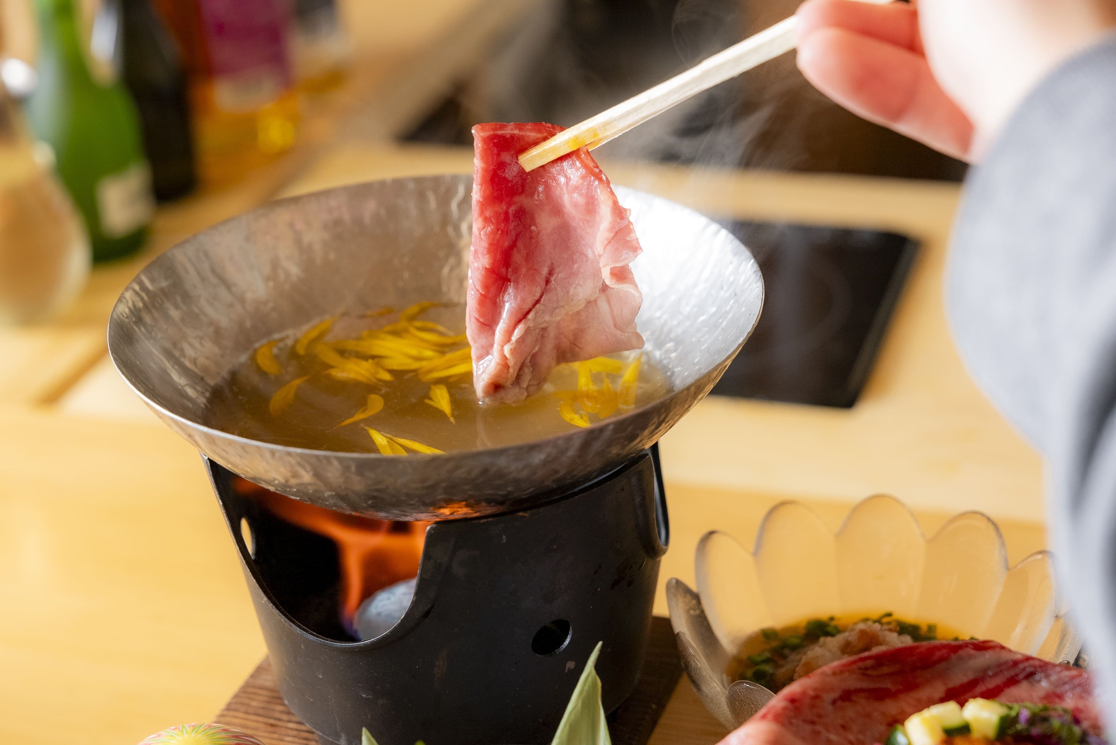 店主が厳選した和牛で贅沢にレアなしゃぶしゃぶをお楽しみください。